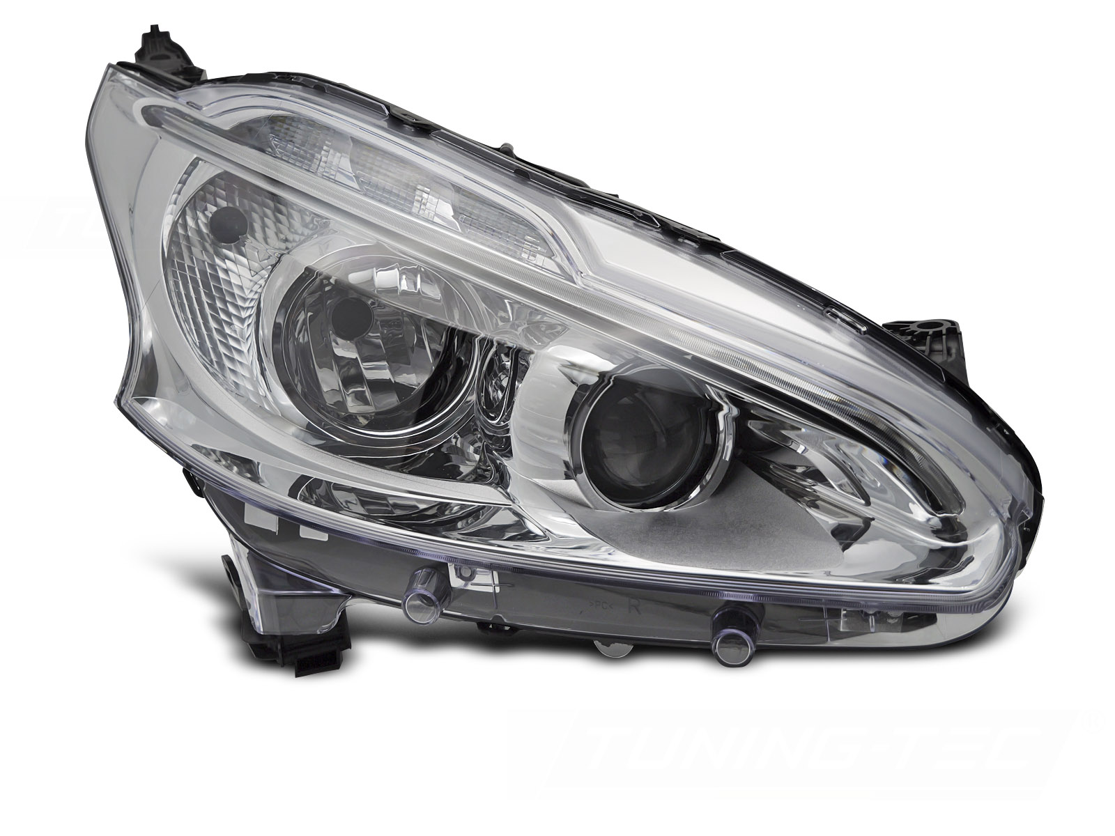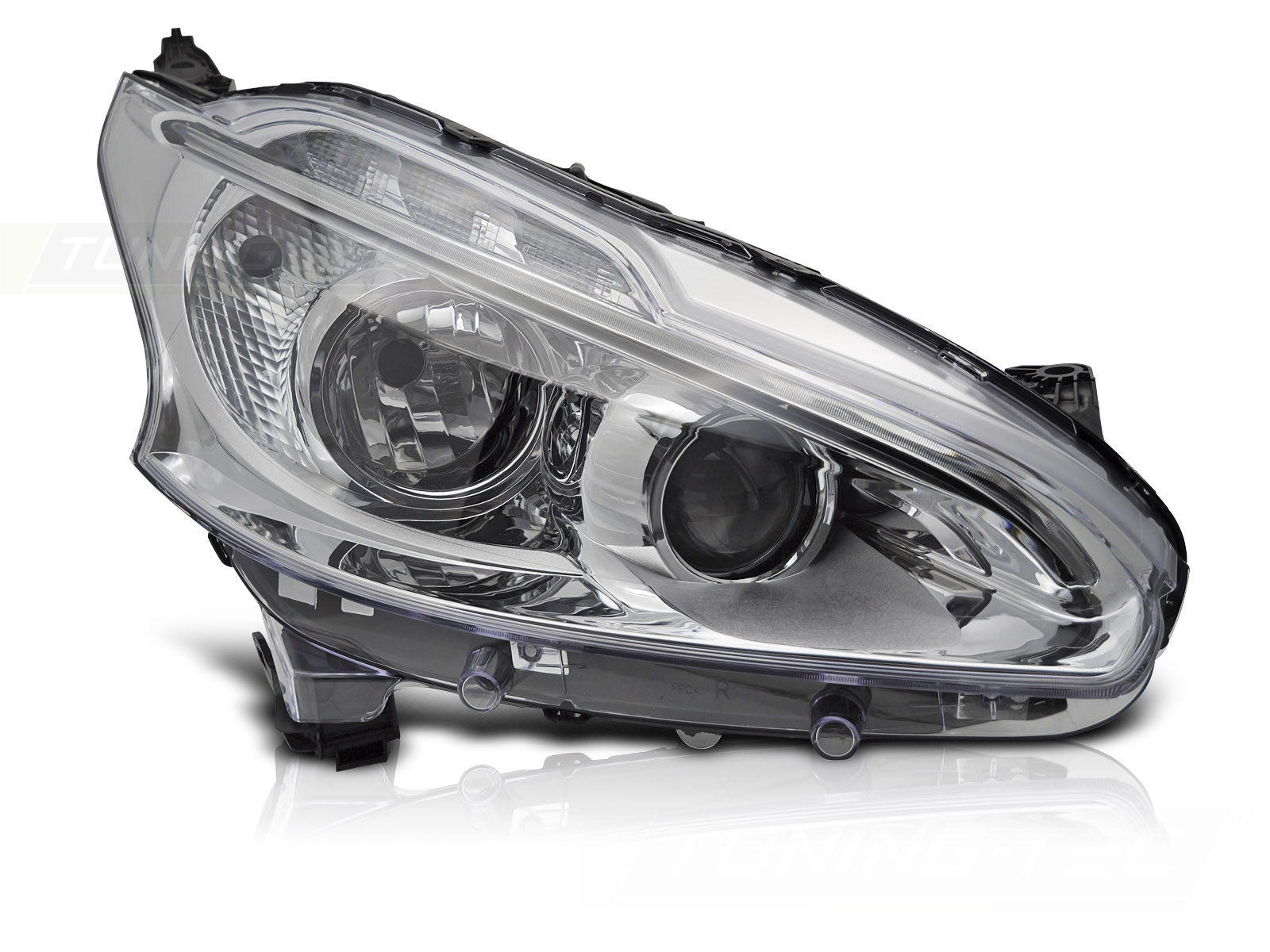FARO CROMADO LED LADO DERECHO TYC PARA PEUGEOT 208 12-15 Descripción Faro delantero. Lado derecho. Homologación: E-marked E4 - legal en la calle. Reemplazo para el faro halógeno original. N. º OEM: 1609697280 Se adapta a:. PEUGEOT 208 HATCHBACK 2012 - 2015 Detalles DRL: LEDLuz de estacionamiento: LEDLuz de señal de giro: PWY21WLuz de cruce: H7 no incluidaLuz de carretera: H7 no incluidaRegulación: eléctrica (con ajustador eléctrico incorporado) Este artículo no es una pieza original del fabricante del vehículo, pero se adapta perfectamente al vehículo al que está asignado.