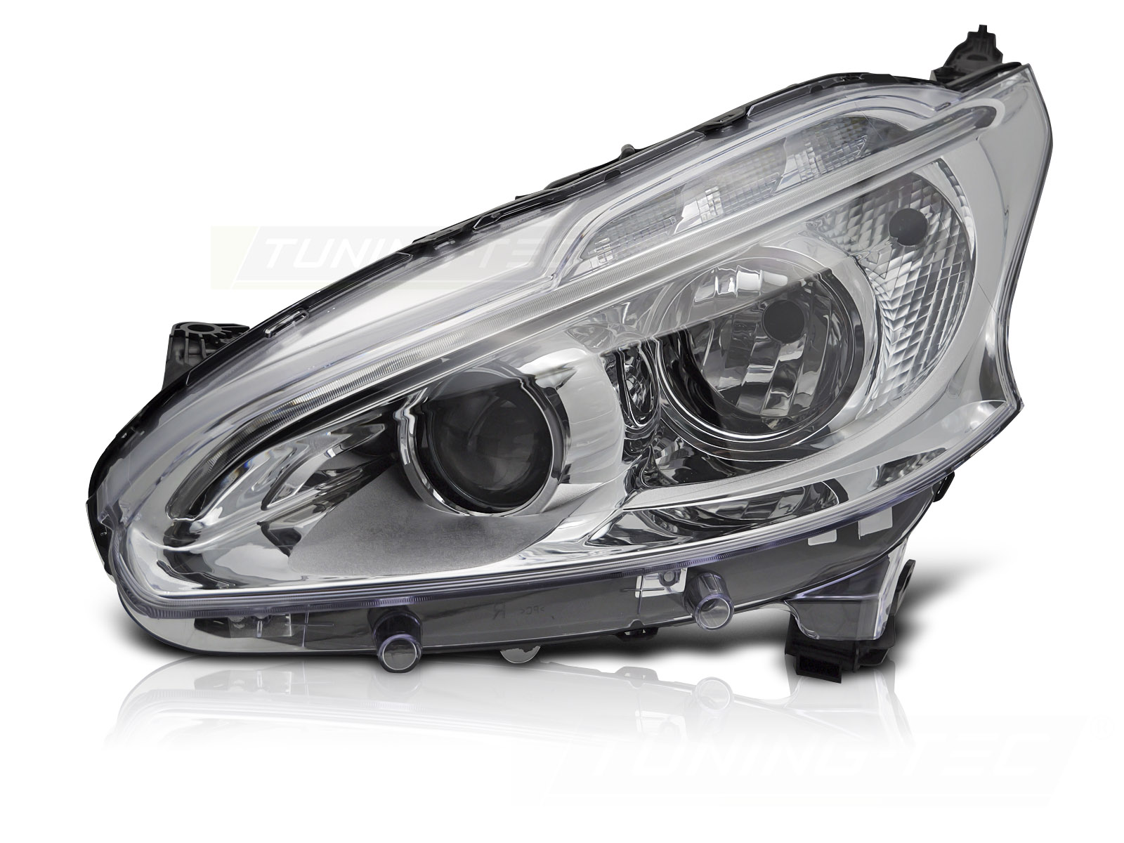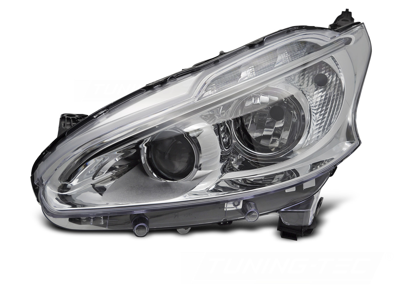 FARO CROMADO LED LADO IZQUIERDO TYC PARA PEUGEOT 208 12-15 Descripción Faro delantero. Lado izquierdo. Homologación: E-marked E4 - legal en la calle. Reemplazo para el faro halógeno original. N. º OEM: 1609697180 Se adapta a:. PEUGEOT 208 HATCHBACK 2012 - 2015 Detalles DRL: LEDLuz de estacionamiento: LEDLuz de señal de giro: PWY21WLuz de cruce: H7 no incluidaLuz de carretera: H7 no incluidaRegulación: eléctrica (con ajustador eléctrico incorporado) Este artículo no es una pieza original del fabricante del vehículo, pero se adapta perfectamente al vehículo al que está asignado.