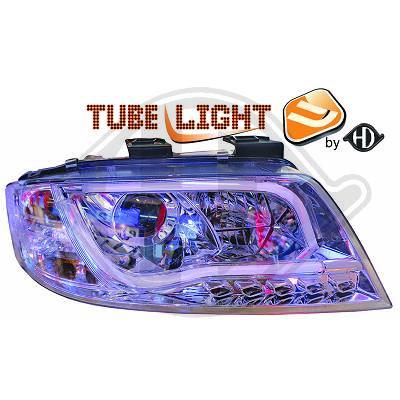SET DE FAROS AUDI A6, 01-05 CRISTAL CLARO/CROMADO, H1+H1 PARA REGULACIÓN DE FAROS ELÉCTRICA TUBE DESIGN TFL LIGHT BAR LOOK El tiempo de entrega del material puede ser de 9 dias.