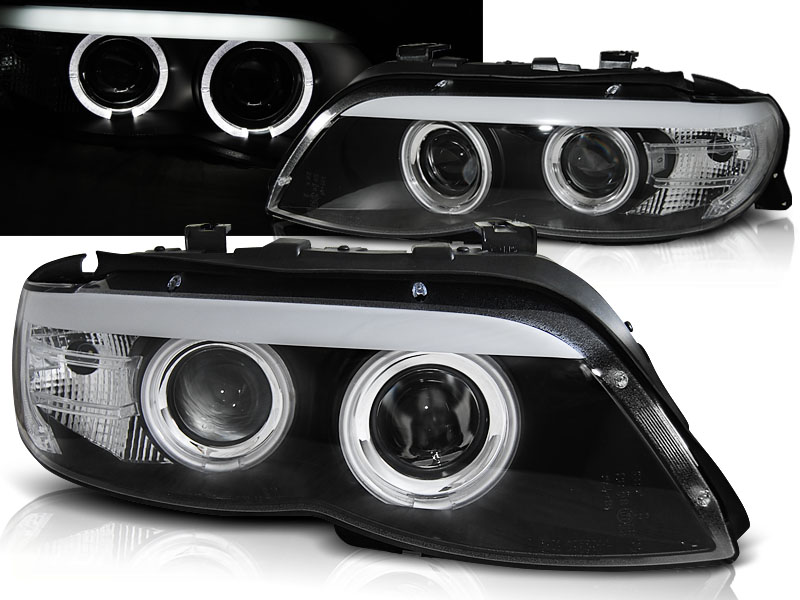 FAROS DELANTEROS ANGEL EYES BMW X5 E53 11.03-06 NEGRO XENON - Xenon Faros delanteros con 2 ojos de angel Dual (low and high beam). - Articulo nuevo, Pareja (Izquierdo+Derecho), Homologacion Europea E-Marcado E6- para uso legal. DETALLES: Luz posicion: Ojos Angel and led line- Intermitente:P21W - Luz corta:D2Sno incluida - Luz larga: H7 incluida - Regulacion: Electrica (Regulador electrico no incluido) ANGEL EYES XENON El tiempo de entrega del material puede ser de 7-9 dias
