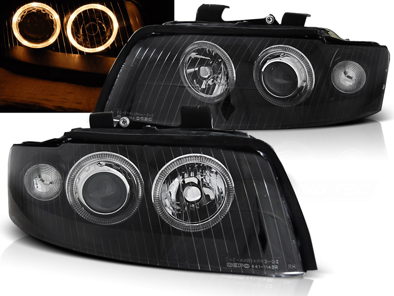 FAROS DELANTEROS ANGEL EYES AUDI A4 10.00-10.04 Fondo Negro XENON D1S - Xenon Faros delanteros con 2 ojos de angel - Articulo nuevo, Pareja (Izquierdo+Derecho), Homologacion Europea E-Marcado- para uso legal. DETALLES: Luz posicion: Ojos Angel - Luz intermitente:P21W - Luz corta:D1S no incluida - Luz larga: H7 no incluida - Regulacion: Electrica (Regulador electrico no incluido). ANGEL EYES XENON RHD / LHD El tiempo de entrega del material puede ser de 7-9 dias