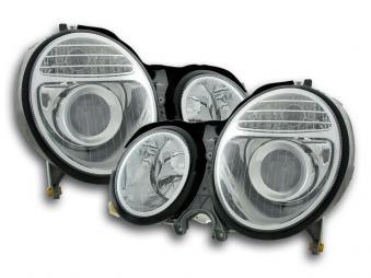 Faros delanteros Set Angel Eyes Mercedes Benz clase E modelo W210 97-01 cromado Fk automotive año de fabricacion: 1997 hasta 2001 Color: cromado- con sello de homologacion europea (libre de homologacion en parte de Europa)Faros de diseño- inmejorable calidad y diseño El tiempo de entrega del articulo puede ser de 7-9 dias segun disponibilidad.