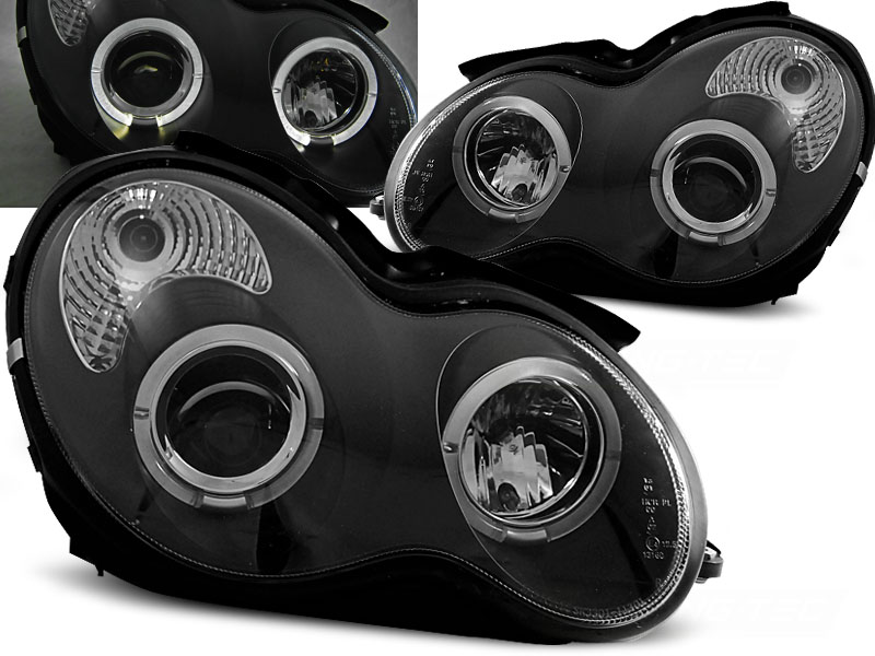 FAROS DELANTEROS ANGEL EYES MERCEDES W203 C-KLASA 07.00-03.04 Fondo Negro - Faros delanteros con 2 ojos de angel - Articulo nuevo, Pareja (Izquierdo+Derecho), Homologacion Europea E-Marcado- para uso legal. DETALLES: Luz posicion: Ojos Angel - Luz intermitente:P21W - Luz corta:H7 no incluida - Luz larga: H1 incluida - - Regulacion:manual (No puede instalarse regulacion electrica). ANGEL EYES El tiempo de entrega del material puede ser de 7-9 dias