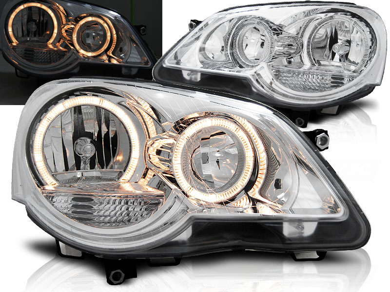 FAROS DELANTEROS ANGEL EYES VW POLO 9N3 04.05-09 ANGEL EYES CROMADOS - Faros delanteros con 2 ojos de angel - Articulo nuevo, Pareja (Izquierdo+Derecho), Homologacion Europea E-Marcado- para uso legal. DETALLES: Luz posicion: Ojos Angel - Luz intermitente:P21W - Luz corta:H7 no incluida - Luz larga: H1 no incluida - Regulacion: Electrica (Preparado para regulacion electrica) ANGEL EYES El tiempo de entrega del material puede ser de 7-9 dias