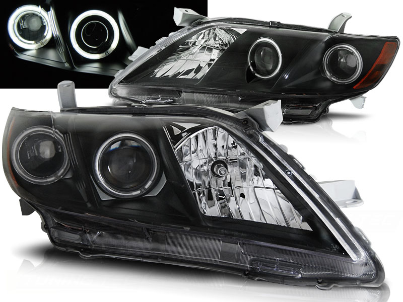 FAROS DELANTEROS ANGEL EYES TOYOTA CAMRY 6 XV40 06-09 Fondo Negro - Faros delanteros con 2 ojos de angel - Articulo nuevo, Incluye la pareja (derecho-Izquierdo) Homologacion: Sin Homologacion. DETALLES: Luz posicion: Ojos Angel - Luz intermitente: W21W - Luz corta:H11 incluida - Luz larga: HB3 incluida - - Regulacion:manual (No puede instalarse regulacion electrica).) ANGEL EYES El tiempo de entrega del material puede ser de 7-9 dias