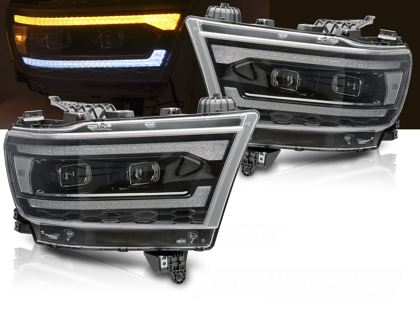 FAROS DELANTEROS LED compatibles con DODGE RAM 19-22 Faros LED con luces de circulación diurna (LUZ DIURNA) Con función de luz de bienvenida Con señal de giro dinámica 100% nuevo, viene en pares (izquierdo derecho) Homologación: sin aprobación Se adapta a: DODGE RAM 1500 2019 - 2022 Detalles LUZ DIURNA: LED Luz de estacionamiento: LED Lámpara de señal de giro: LED Luz de cruce: LED Luz de carretera: LED Regulación: manual (no se puede instalar regulador eléctrico) LUZ DIURNA REAL Señal de giro dinámica El tiempo de entrega puede ser de 7-9 dias dependiendo de la disponibilidad del articulo.