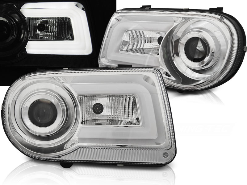 CHRYSLER 300C 05-10 CROMADO FAROS DELANTEROS LUZ DIURNA TUBE LIGHT - Faros delanteros luz diurna LED.Tipo Hi-Low (cruce y larga). - Articulo nuevo, Incluye la pareja (derecho-Izquierdo) Homologacion: NO HOMOLOGADO Luz posicion: Ojos Angel Low and - Luz Larga:H7 incluida - Regulacion:manual (No puede instalarse regulacion electrica). LED TUBE LIGHT El tiempo de entrega del material puede ser de 7-9 dias