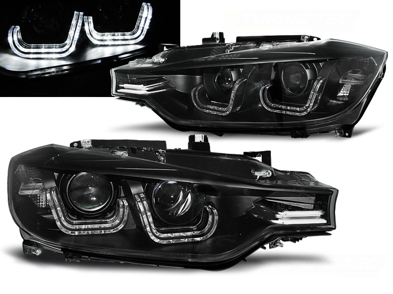 BMW F30/F31 10.11 - 05.15 FAROS DELANTEROS LUZ DIURNA NEGRO U-LED BAR - Faros delanteros con Luz Diurna (DRL).Tipo Hi-Low (cruce y larga). - Articulo nuevo, Pareja (Izquierdo+Derecho), Homologacion Europea E-Marcado E9 - approved, ECE-R87 Homologacion. DETALLES: Luz posicion: U-LED BARDRL:U-LED BAR- Luz intermitente:P21W Low and - Luz Larga:H7 incluida - Regulacion: Electrica (Preparado para regulacion electrica). LED TRU DRL El tiempo de entrega del material puede ser de 7-9 dias