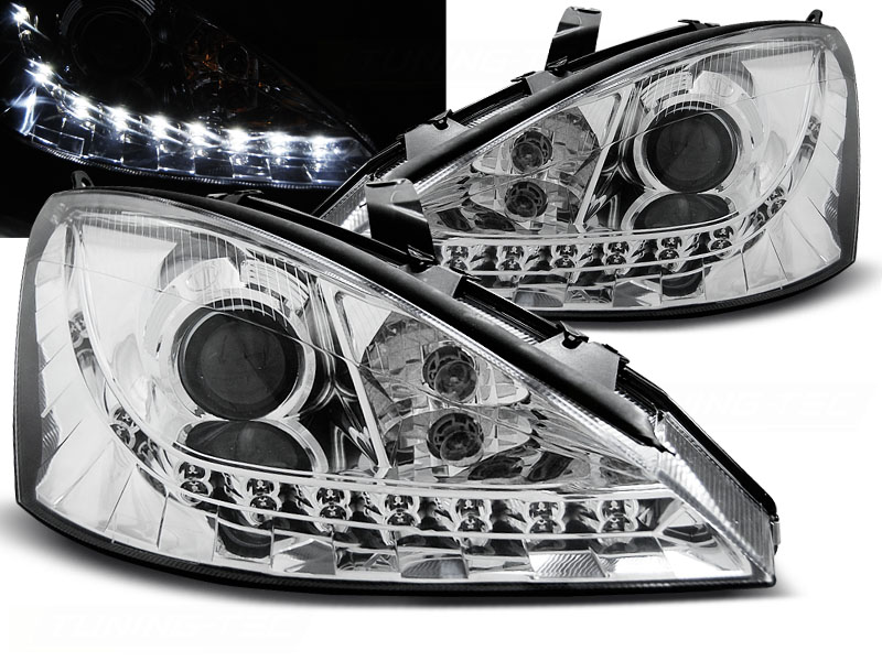 FORD FOCUS 10.98-10.01 FAROS DELANTEROS LUZ DIURNA CROMADOS - Faros delanteros luz diurna LED. - Articulo nuevo, Pareja (Izquierdo+Derecho), Homologacion Europea E-Marcado- para uso legal. DETALLES: Luz posicion: LED- Luz intermitente:P21W Low and - Luz Larga:H7 incluida - Regulacion: Electrica (Regulador electrico no incluido) LED El tiempo de entrega del material puede ser de 7-9 dias