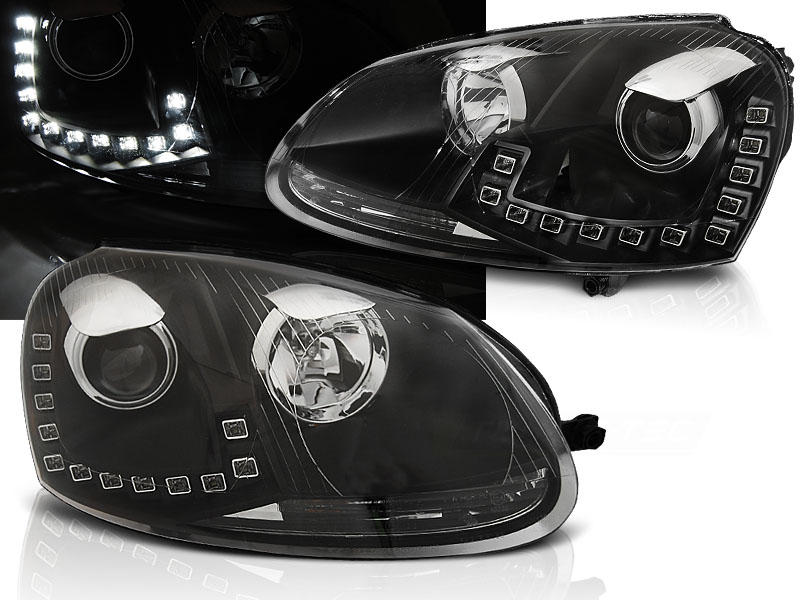 VW GOLF 5 10.03-09 FAROS DELANTEROS LUZ DIURNA LED DRL NEGRO - Faros delanteros con Luz Diurna (DRL). - Articulo nuevo, Pareja (Izquierdo+Derecho), Homologacion Europea E-Marcado E4 - approved, ECE-R87 Homologacion. DETALLES: Luz posicion:LEDDRL:LED- Luz corta:H7 incluida - Luz larga:H1 incluida - Regulacion: Electrica (Preparado para regulacion electrica). TRU DRLLED El tiempo de entrega del material puede ser de 7-9 dias