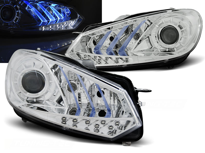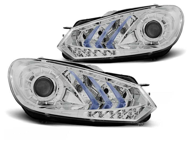 VW GOLF 6 10.08- 12 FAROS DELANTEROS LUZ DIURNA TRU DRL ECE-R87 CROMADO - Faros delanteros con Luz Diurna (DRL).Tipo Hi-Low (cruce y larga). - Articulo nuevo, Pareja (Izquierdo+Derecho), Homologacion Europea E-Marcado - approved, ECE-R87 Homologacion. DETALLES: Luz posicion: LEDDRL:LED, P21W- Luz intermitente:PSY24W Low and highbeam:H7 no incluida - Regulacion: Electrica (electrical adjuster is incluida). LED TRU DRL El tiempo de entrega del material puede ser de 7-9 dias