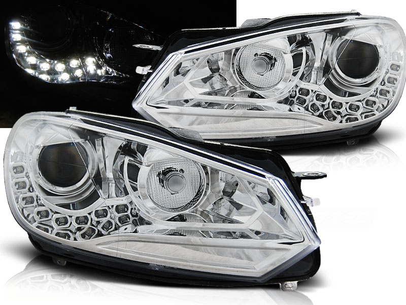 VW GOLF 6 10.08-12 FAROS DELANTEROS LUZ DIURNA TRU DRL ECE-R87 CROMADO - Faros delanteros con Luz Diurna (DRL). - Articulo nuevo, Incluye la pareja (derecho-Izquierdo)Tipo Hi-Low (cruce y larga).Homologacion: E-Marcado- approved, ECE-R87 Homologacion. DETALLES: Luz posicion:LEDDRL: LED- Luz intermitente: P21WLow and - Luz Larga:H7 no incluida - Regulacion: Electrica (Preparado para regulacion electrica). LED TRU DRL El tiempo de entrega del material puede ser de 7-9 dias