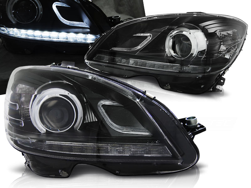 MERCEDES W204 07-10 FAROS DELANTEROS LUZ DIURNA FONDO NEGRO - Faros delanteros luz diurna LED. - Articulo nuevo, Incluye la pareja (derecho-Izquierdo)Tipo Hi-Low (cruce y larga).Homologacion: E-Marcado E4- approved. DETALLES: Luz posicion: LEDLow and - Luz Larga:H7 incluida - Regulacion: Electrica (Preparado para regulacion electrica). LED El tiempo de entrega del material puede ser de 7-9 dias