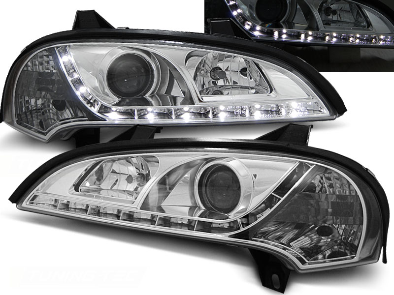 OPEL TIGRA 09.94-12.00 FAROS DELANTEROS LUZ DIURNA CROMADOS - Faros delanteros luz diurna LED. - Articulo nuevo, Pareja (Izquierdo+Derecho), Homologacion Europea E-Marcado- para uso legal. DETALLES: Luz posicion: LED- Luz intermitente:P21W - Luz corta:H1 incluida - Luz larga: H1 incluida - Regulacion: Electrica (Regulador electrico no incluido) LED El tiempo de entrega del material puede ser de 7-9 dias