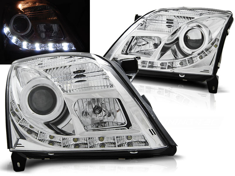 OPEL VECTRA C 04.02-08.05 FAROS DELANTEROS LUZ DIURNA TRU DRL ECE-R87 CROMADO - Faros delanteros con Luz Diurna (DRL). - Articulo nuevo, Pareja (Izquierdo+Derecho), Homologacion Europea E-Marcado- approved, ECE-R87 Homologacion. DETALLES: Luz posicion: LEDDRL: LED- Luz intermitente:P21W - Luz corta:H7 no incluida - Luz Larga: H1 incluida - Regulacion: Electrica (Regulador electrico no incluido). LED TRU DRL El tiempo de entrega del material puede ser de 7-9 dias