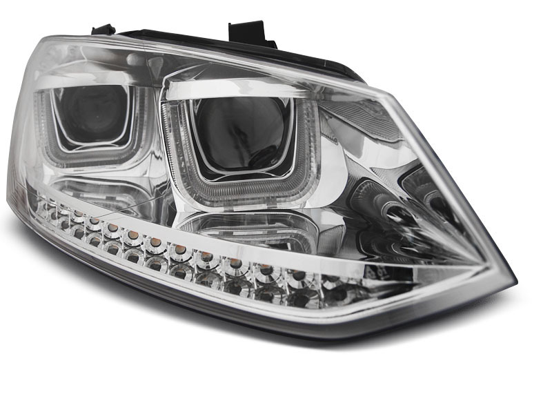 VW POLO 6R 09-03.14 U-TYPE LED Intermitentes Dinamicos CHROME - Faros delanteros luz diurna LED..Con intermitente Dinamicos. - Articulo nuevo, Pareja (Izquierdo+Derecho), Homologacion Europea E-Marcado E6- approved. DETALLES: Luz posicion:LEDU-type- Luz intermitente: LED Dinamico Lowbeam:H7 incluida - Luz larga:H7 incluida - Regulacion: Electrica (Preparado para regulacion electrica). LEDU-TYPE Dynamic Turn Signal > El tiempo de entrega del material puede ser de 7-9 dias