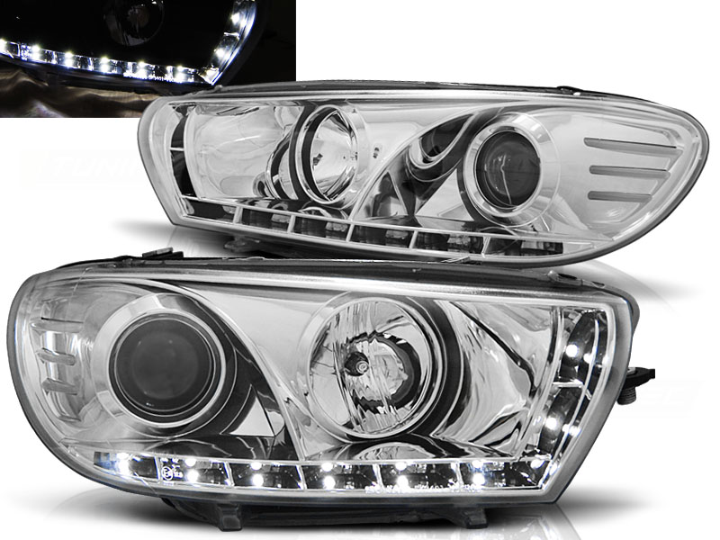 VW SCIROCCO 08-04.14 FAROS DELANTEROS LUZ DIURNA CROMADOS - Faros delanteros luz diurna LED. - Articulo nuevo, Pareja (Izquierdo+Derecho), Homologacion Europea E-Marcado- para uso legal. DETALLES: Luz posicion: LED- Luz corta:H7 no incluida - Luz larga: H1 incluida - Regulacion: Electrica (electrical adjuster is incluida) LED El tiempo de entrega del material puede ser de 7-9 dias