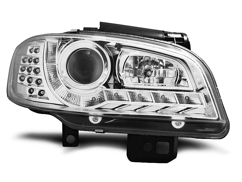 SEAT IBIZA/CORDOBA 09.99-03.02 FAROS DELANTEROS LUZ DIURNA CROMADOS - Faros delanteros luz diurna LED. - Articulo nuevo, Pareja (Izquierdo+Derecho), Homologacion Europea E-Marcado- para uso legal. DETALLES: Luz posicion: LED- Luz intermitente:LED - Luz corta:H1 incluida - Luz larga: H1 incluida - Regulacion: Electrica (electrical adjuster is incluida) LED El tiempo de entrega del material puede ser de 7-9 dias