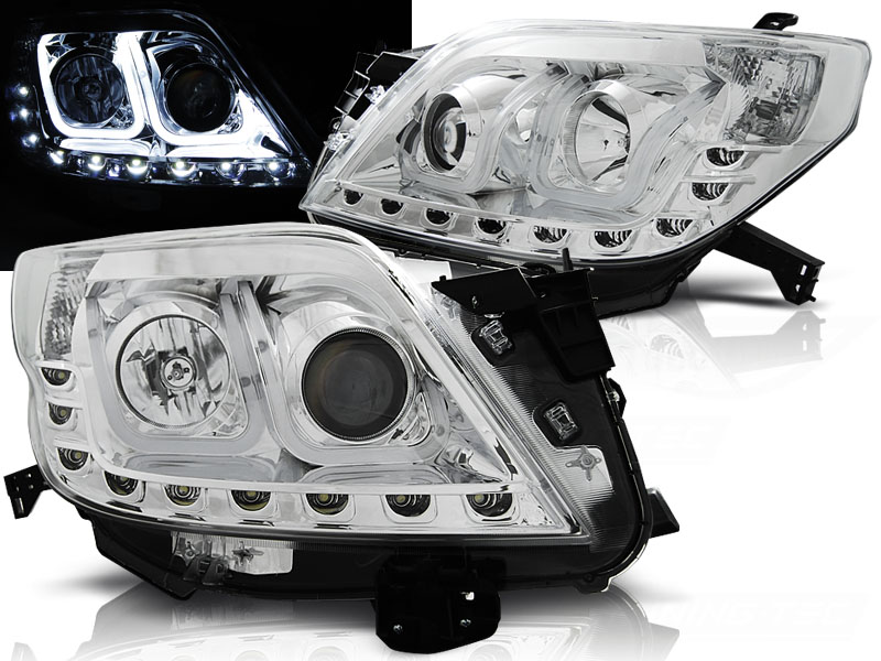 TOYOTA LAND CRUISER 150 09-13 FAROS DELANTEROS LUZ DIURNA TUBE LIGHT CROMADO - Faros delanteros luz diurna LED. - Articulo nuevo, Incluye la pareja (derecho-Izquierdo) Homologacion: Sin Homologacion. DETALLES: Luz posicion: LED- Luz intermitente: W21W - Luz corta:H7 incluida - Luz larga: H1 incluida - - Regulacion:manual (No puede instalarse regulacion electrica). LED TUBE LIGHT El tiempo de entrega del material puede ser de 7-9 dias