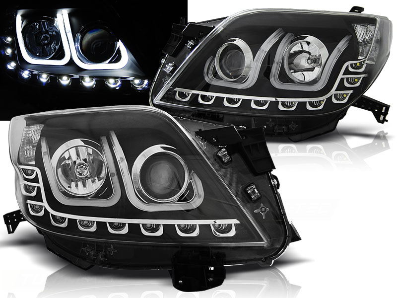 TOYOTA LAND CRUISER 150 09-13 FAROS DELANTEROS LUZ DIURNA TUBE LIGHT NEGRO - Faros delanteros luz diurna LED. - Articulo nuevo, Incluye la pareja (derecho-Izquierdo) Homologacion: Sin Homologacion. DETALLES: Luz posicion: LED- Luz intermitente: W21W - Luz corta:H7 incluida - Luz larga: H1 incluida - - Regulacion:manual (No puede instalarse regulacion electrica). LED TUBE LIGHT El tiempo de entrega del material puede ser de 7-9 dias