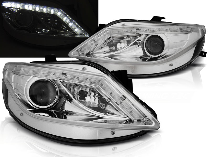Projector headlights with LED Parking light..Hi-Low projector type (low and high beam)., Set completo (izquierdo-derecho). Homologacion: E-marked E4- for street legal. Luz de Posicion: LED Intermitentes:PY21W Low and highbeam:H9 (Incluida) Regulacion: electrica (motor de regulacion incluido) LED Plazo de entrega 10 dias.