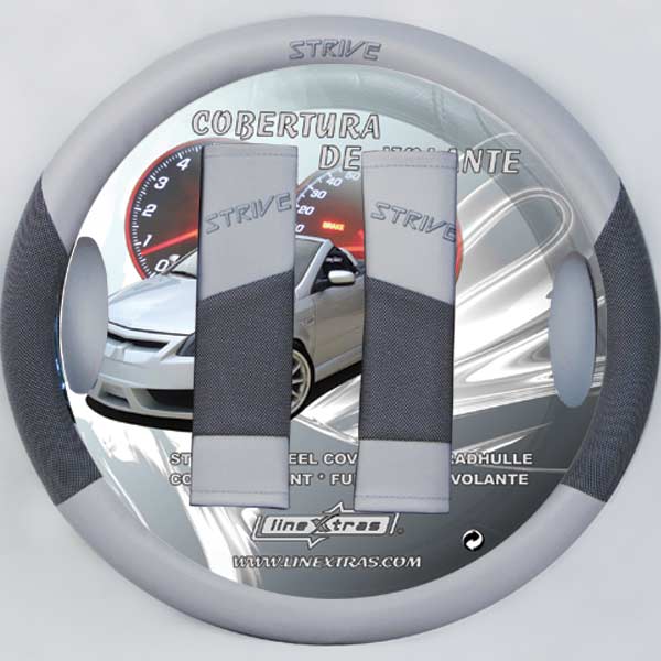 FUNDA CUBREVOLANTE GRIS CLA./GRIS OSC C/ALMOHADILLAS CINTUR