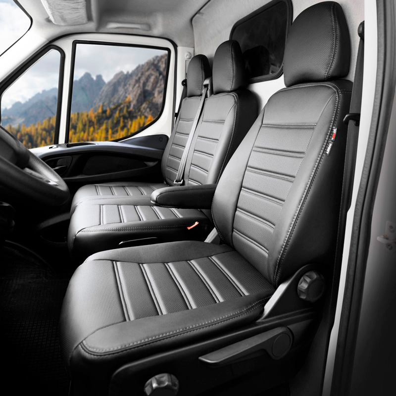 Fundas de asiento de cuero artificial Otom New York Design 2+1 compatibles con Volkswagen Transporter T7 2024- (reposabrazos en el asiento del conductor y mesa en el respaldo) El tiempo de entrega del articulo puede ser de 10 dias dependiendo de la disponibilidad del articulo.