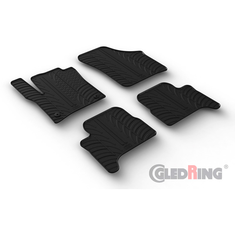 Juego de alfombrillas goma valido para Volkswagen e-Up / Skoda e-Citigo / Seat e-Mii 2019- (perfil T 4 piezas + clips de montaje) El tiempo de entrega del producto puede ser de 10 dias según disponibilidad.