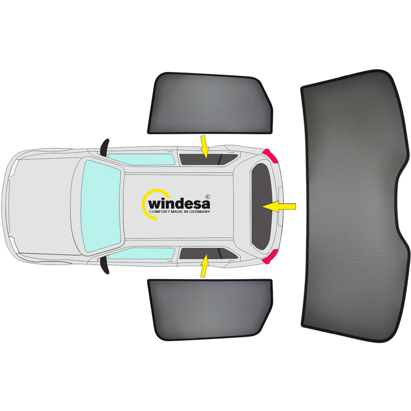 Mantenga su vehículo fresco y cómodo con los parasoles SunClip: el sistema de protección solar y de privacidad específico para el vehículo fabricado en Alemania.