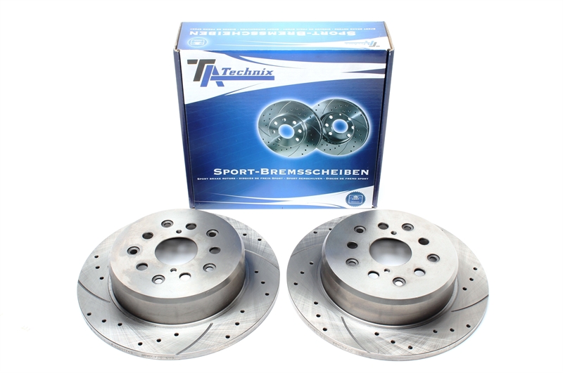 Juego de discos de freno deportivos TA Technix eje trasero perforado + ranurado OEM-número de comparación: 42431-30260, 42431-53010, 42431-53011 Valido para: Lexus GS (UZS161, JZS160) 300,My.10.00 - 03.05, 161kW,219PS,2997ccm Lexus GS (UZS161, JZS160) 300 T3, My.08.97 - 10.00,163kW,222PS,2997ccm Lexus GS (UZS161, JZS160) 400,My.12.97 - 11.00,69cW Leus,3x92xcW,92x916kW GS (UZS161, JZS160) 430,Mi.11.00 - 03.05,208kW,283PS,4293ccm Lexus ES I (JCE1_, GXE1_) 200,Mi.04.99 - 07.05,114kW,155PS,1988ccm Lexus ES I (JCE1_, GXE1_) 300,My.09.01 - 07.05,157kW,213PS,2997ccm Lexus IS SportCross 200,My.10.02 - 10.05,114kW,155PS,1988ccm Lexus IS SportCross 300,My.10.01 - 10.05,157kW,913cLexus SCPS,2Z9xus (UZZ40_) 430,Mi.05.01 - 07.10,210kW,286PS,4293ccm Marca: Lexus Modelo: Lexus GS / Lexus IS I / Lexus IS Sport Cross / Lexus SC Tipo: Lexus GS (S16), Lexus IS I (XE1), Lexus IS Sport Cross (XE1), Lexus SC (Z4) Año: 1999 - 2010 Lexus GS / Lexus IS I / Lexus IS Sport Cross / Lexus SC Modelo: Tipo: Año: