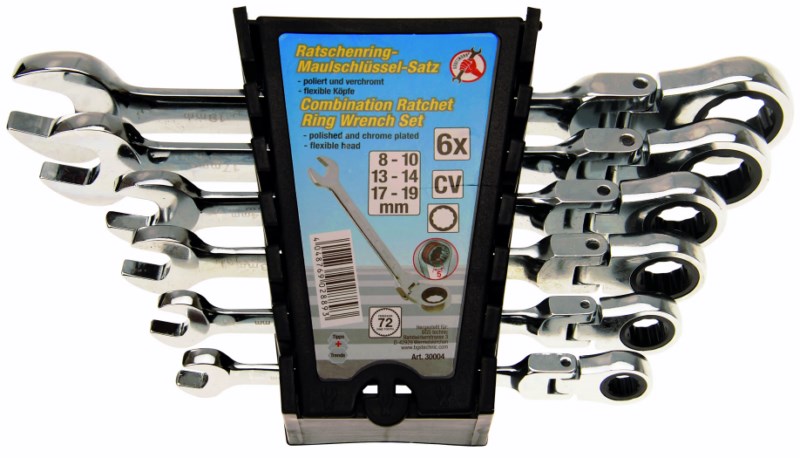 Juego de llaves combinadas de carraca con cabeza flexible - 6 piezas