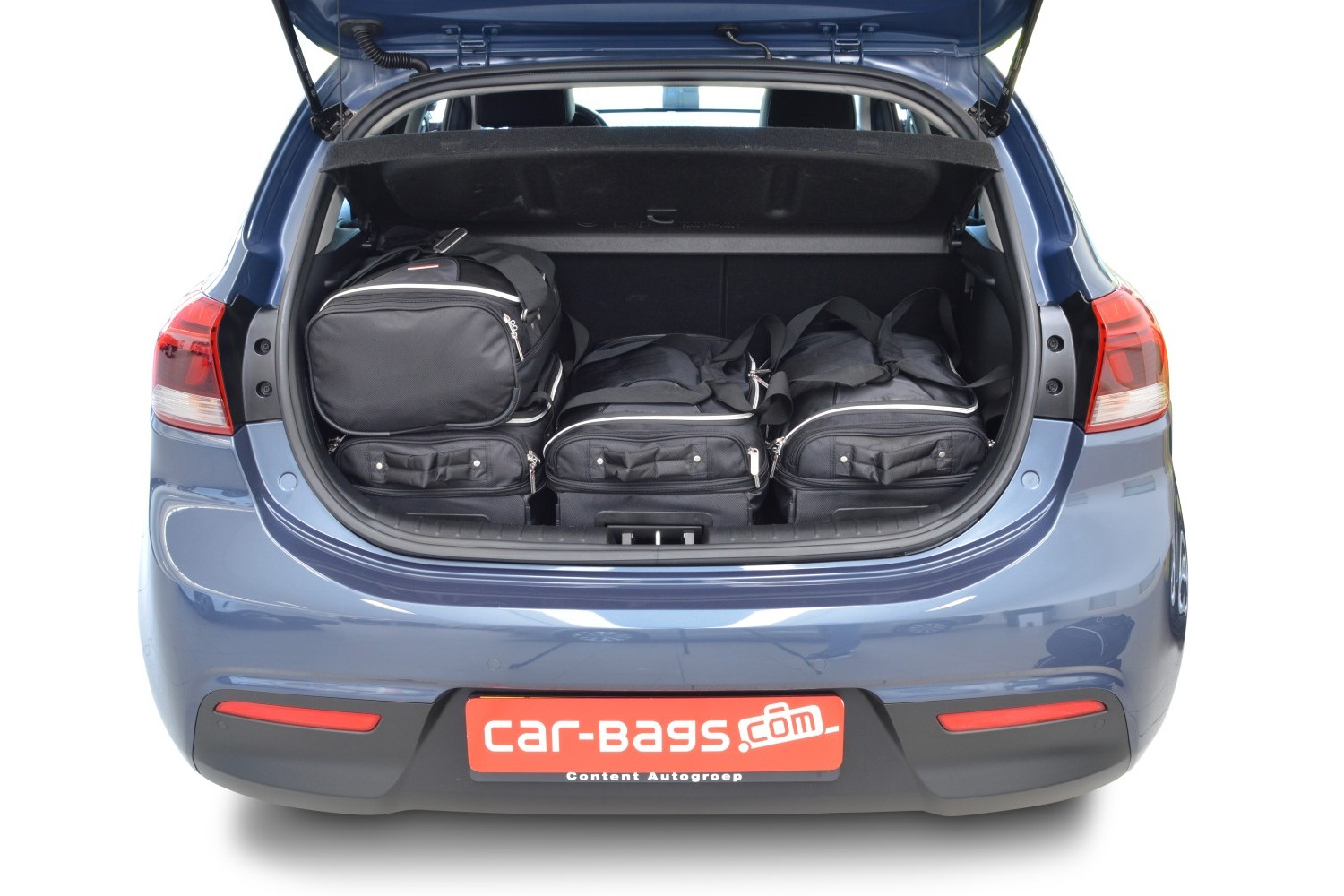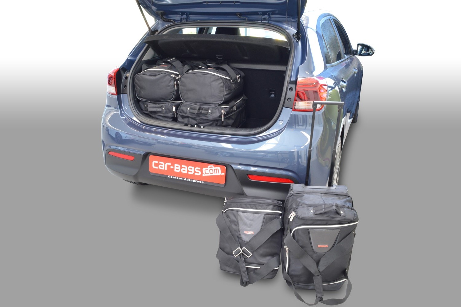 Set de maletas específico Carbags para KIA Rio (YB) Año: 2017-> 5 Puertas. Diseñado exclusivamente para el suelo del maletero ajustable. Incluye: