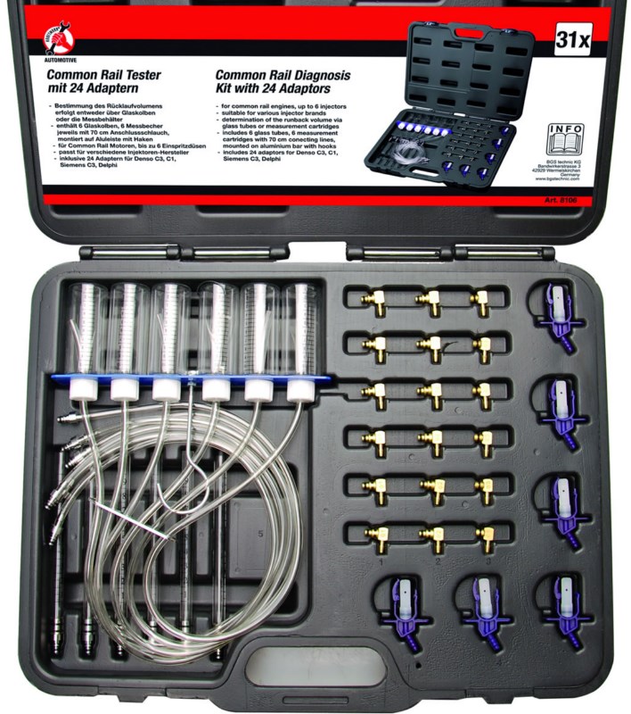 Medidor de flujo de common rail con 24 adaptadores