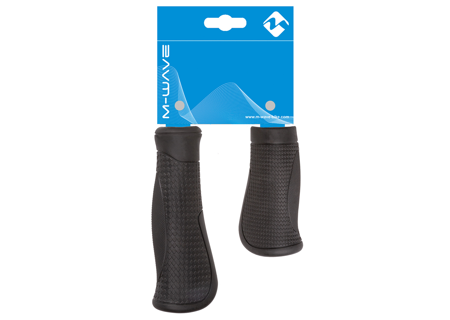 M-WAVE, Grips, Cloud Base 2, comfort grip, anatomically shaped, 95mmright-side and 130mm left-side, black, pair on card, closed on the external side
