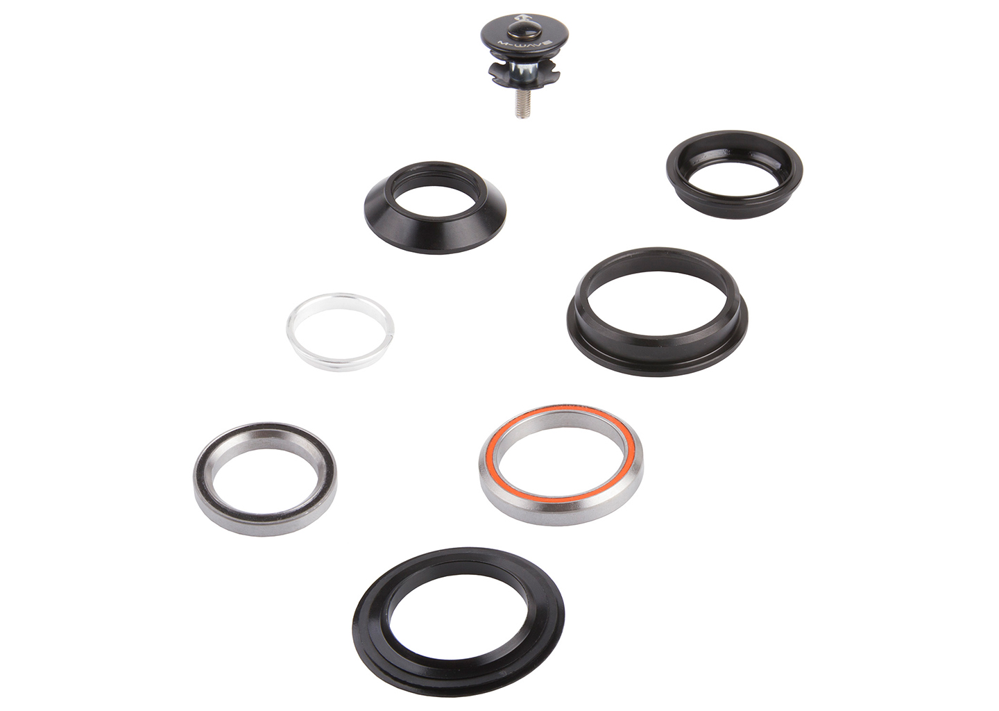 M-WAVE, Headsets, Carousel HS Mix, semi-integrated, 1 1/8"-1,5", black, steel, 28.6mm inner diameter of upper ring, 44mm outer diameter of upper bearing, 56mm outer diameter of lower bearing, 39.8mm conus seat on fork