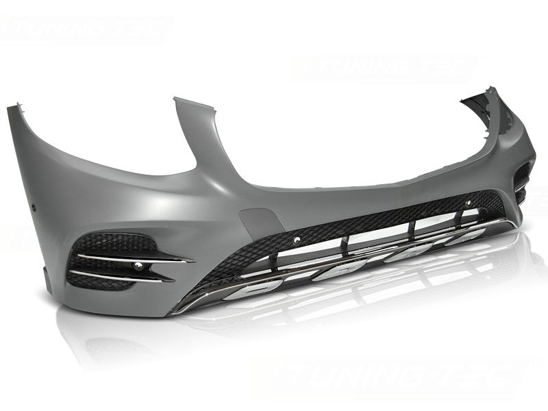 Paragolpes delantero GLC43 style.. Fabricado en plastico. Incluye: - Agujeros Sensores de parking- tapa gancho- outer grille with chome strips- lower grille- chrome strip- chrome components- absorber- strenghening bumper- soporte de matricula - All components needed to install/ mount a bumper PDC