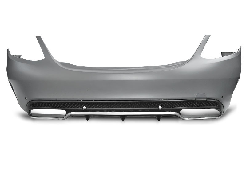 Paragolpes trasero C63 style con agujeros para sensores de parking. Incluido: - agujeros sensores de parking- tapa gancho incluida- diffuser withtwin outlettwin muffler- silver strips- side cover- reinforcement- All components needed to install/ mount a bumper PDC Plazo de entrega 10 dias.