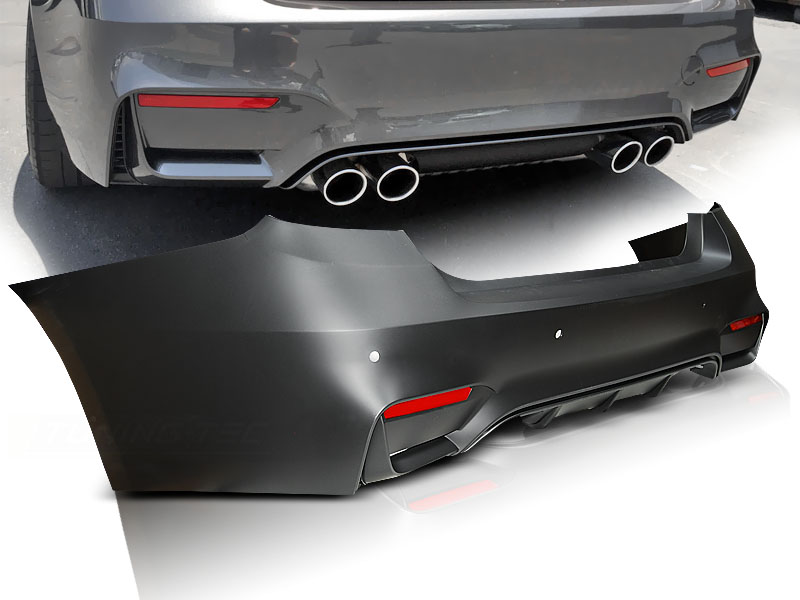 Paragolpes trasero M3 style con agujeros para sensores de parking.