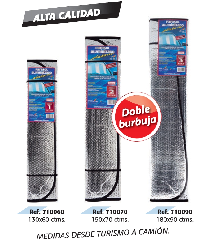 Parasol Aluminizado Slalom Doble Burbuja Med. 130 X 60 Cm. Con Ventosas