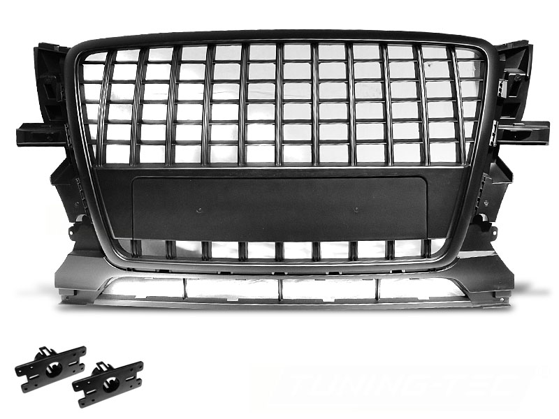 Parrilla deportiva AUDI Q5 08-09.12 NEGRO S-LINE STYLE Parrilla Deportiva S-Line style. MATT BLACK Does not fit the bumper S-Line.With the ability to connect parking sensor. Articulo incluye: - Base logo - PDC Agujeros sensores Parking El tiempo de entrega del material puede ser de 7-9 dias