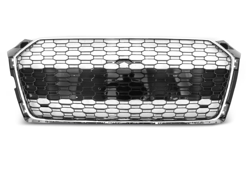 PARRILLA DEPORTIVA CROMADO NEGRO BRILLO fit AUDI A5 19- Descripción Rejilla delantera SPORT CROMO NEGRO Si encaja en la versión estándar, no encaja en RS5 También encaja en modelos con cámara frontal. Con sensor de aparcamiento. El juego incluye: - soporte para logotipo - soporte y cubierta para cámara frontal - soportes para sensores de parging PDC - marco para matrícula