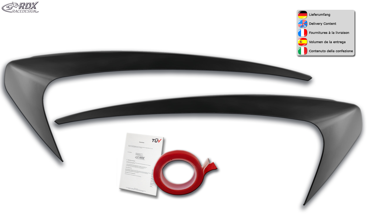 Pestañas de faros RDX para cejas de faros SEAT Mii Rdx Racedesign Contenido del envÃo: > Pestañas de faros / Cejas de faros (izquierda y derecha) > Accesorios de instalación (cinta adhesiva) > Homologación TÜV
