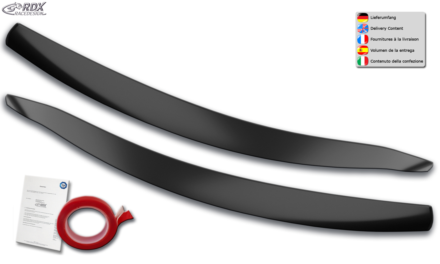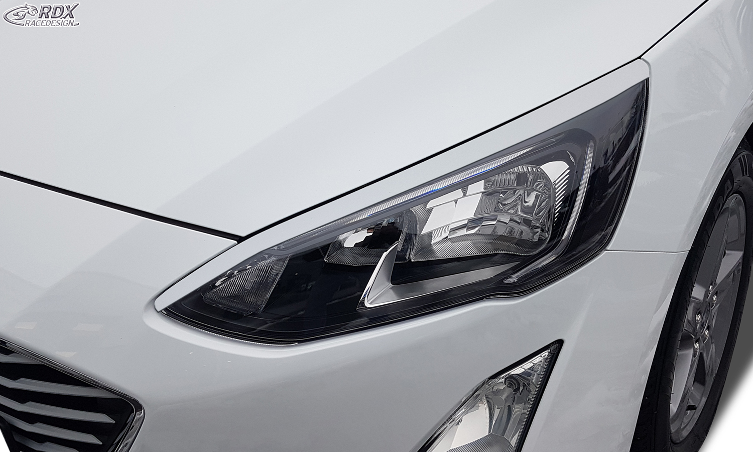 RDX Pestañas de faros para FORD Focus 4 DEH (2018-2022) Light Brows Conjunto para ambos lados. Fabricado en plástico PUR/ABS. Incluye homologación TUV y cinta adhesiva. Contenido de la entrega: > Cubiertas de faros / Faros delanteros (izquierdo y derecho) > Accesorios de instalación (Cinta adhesiva) > Homologación TUV