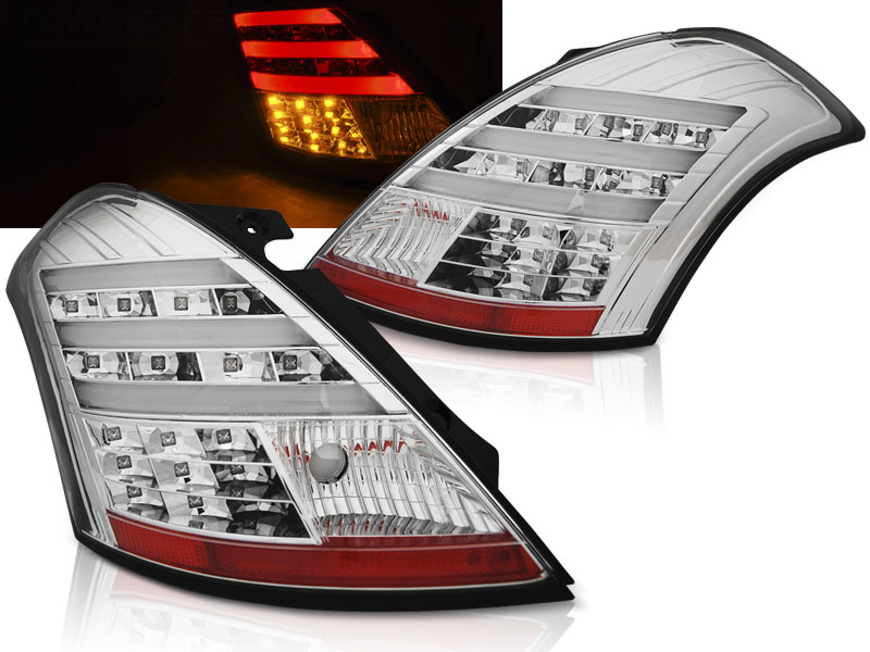 PILOTOS TRASEROS LED SUZUKI SWIFT IV 10- CROMADO LED BAR - Articulo nuevo, Pareja de pilotos traseros (Izquierdo+Derecho), Homologacion Europea E-Marcado E9- para uso legal. DETALLES: Luz posicion: LED, Luz freno: LED, Luz Marcha atras: BOMBILLA, Intermitentes: LED, LED LED BAR El tiempo de entrega del material puede ser de 7-9 dias