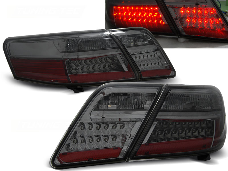 PILOTOS TRASEROS LED TOYOTA CAMRY 6 XV40 06-09 AHUMADO LED - Articulo nuevo, Incluye la pareja (derecho-Izquierdo) Homologacion: NO HOMOLOGADO Luz posicion: LED, Luz freno: LED, Luz Marcha atras: BOMBILLA, Intermitentes: BOMBILLA, LED El tiempo de entrega del material puede ser de 7-9 dias