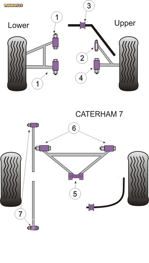 Silentblock del chassis PACK COMPLETO PARA EL VEHICULO DE 1 Unidades Numero en el diagrama: 5 Marca: CATERHAM Modelo: 7 Imperial Chassis (DeDion With Watts Linkage) Powerflex produce casquillos y silent-blocks de poliuretano diseñados para incrementar la estabilidad en todas las unionenes articuladas, ayudando considerablemente a estabilizar la geometría de la suspensión durante las curvas, en frenadas y en aceleraciones.
