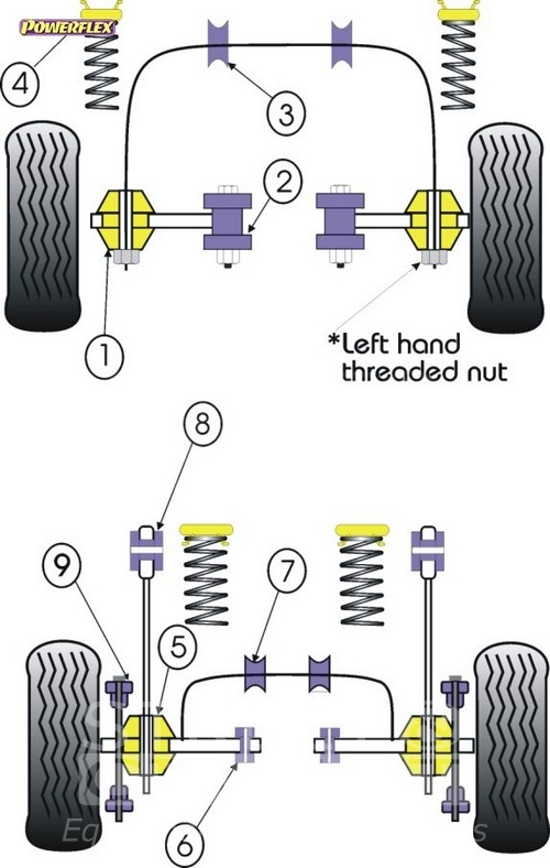 Exhaust Mount PACK COMPLETO PARA EL VEHICULO DE 2 Unidades Numero en el diagrama: Marca: FORD Modelo: Escort Mk3 & 4, XR3i, Orion All Types Powerflex produce casquillos y silent-blocks de poliuretano diseñados para incrementar la estabilidad en todas las unionenes articuladas, ayudando considerablemente a estabilizar la geometría de la suspensión durante las curvas, en frenadas y en aceleraciones.