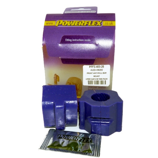 Front Anti Roll Bar To Chassis 25mm PACK COMPLETO PARA EL VEHICULO DE 2 Unidades Numero en el diagrama: 3 Marca: AUDI Modelo: V8 Type 44 & 4C (10/88-11/93) Powerflex produce casquillos y silent-blocks de poliuretano diseñados para incrementar la estabilidad en todas las unionenes articuladas, ayudando considerablemente a estabilizar la geometría de la suspensión durante las curvas, en frenadas y en aceleraciones.