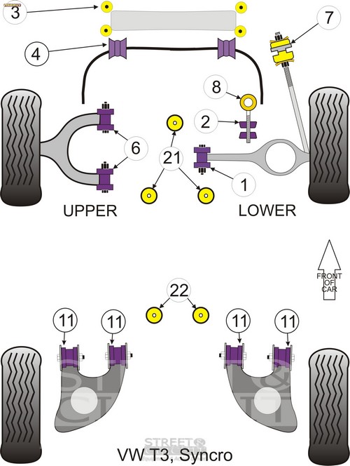 Front Anti Roll Bar To Chassis Bush 21mm PACK COMPLETO PARA EL VEHICULO DE 2 Unidades Numero en el diagrama: 4 Marca: VOLKSWAGEN Modelo: Syncro Powerflex produce casquillos y silent-blocks de poliuretano diseñados para incrementar la estabilidad en todas las unionenes articuladas, ayudando considerablemente a estabilizar la geometría de la suspensión durante las curvas, en frenadas y en aceleraciones.