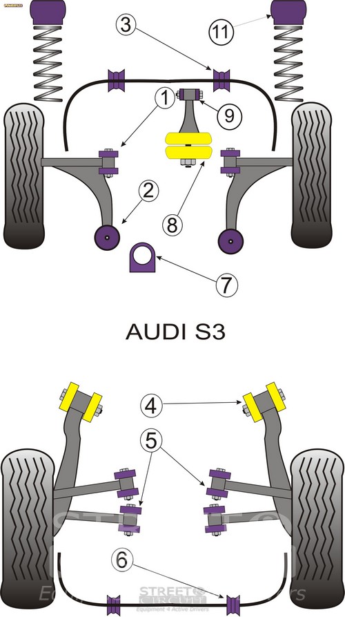 Front Anti Roll Bar Mounting 17mm PACK COMPLETO PARA EL VEHICULO DE 2 Unidades Numero en el diagrama: 3 Marca: AUDI Modelo: S3 Mk1 Typ 8L 4WD (1999-2003) Powerflex produce casquillos y silent-blocks de poliuretano diseñados para incrementar la estabilidad en todas las unionenes articuladas, ayudando considerablemente a estabilizar la geometría de la suspensión durante las curvas, en frenadas y en aceleraciones.
